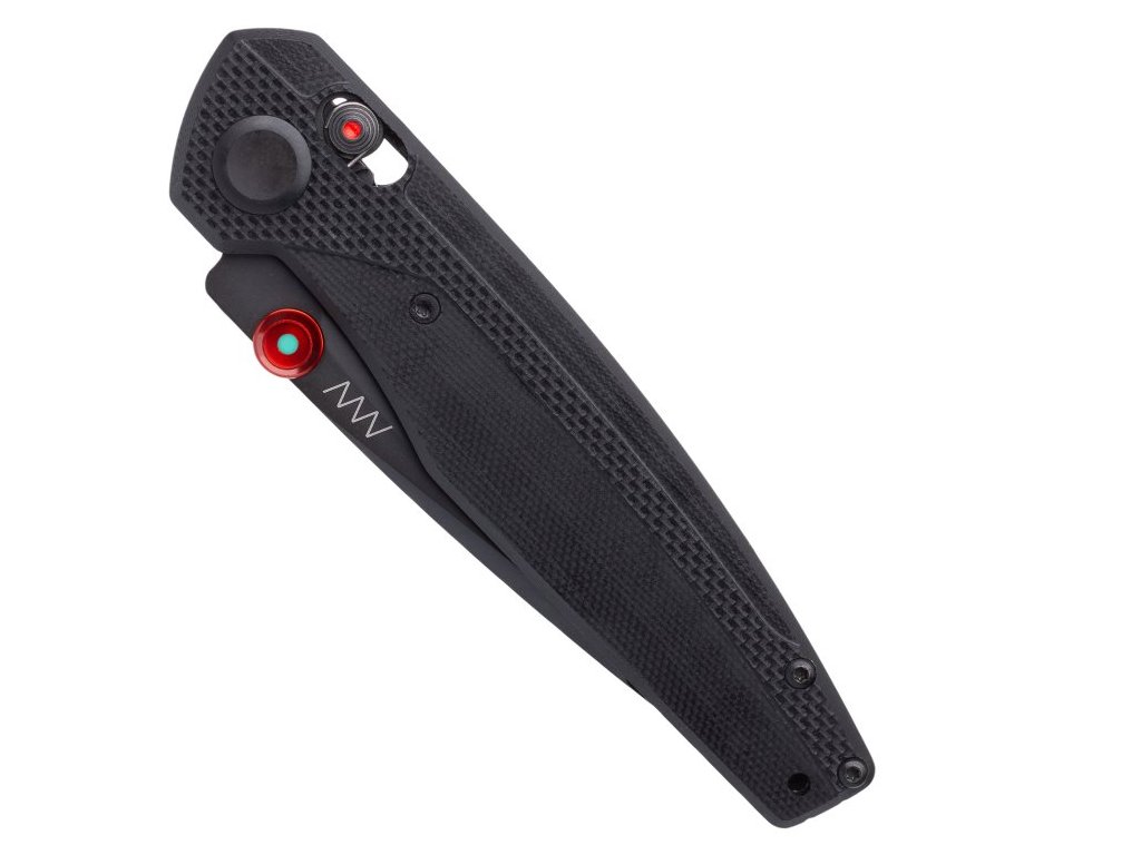 Pokud se zaměříme na střed nože, všimnete si, že je pro jeho otevírání použito nové “tlačítko” pro palec, které je perfektní pro otevírání nože jednou rukou. “Tlačítko” je zároveň opatřeno ANV lumidotem. Stačí jen položit palec na horní hranu a lehkým tahem nůž otevřít.