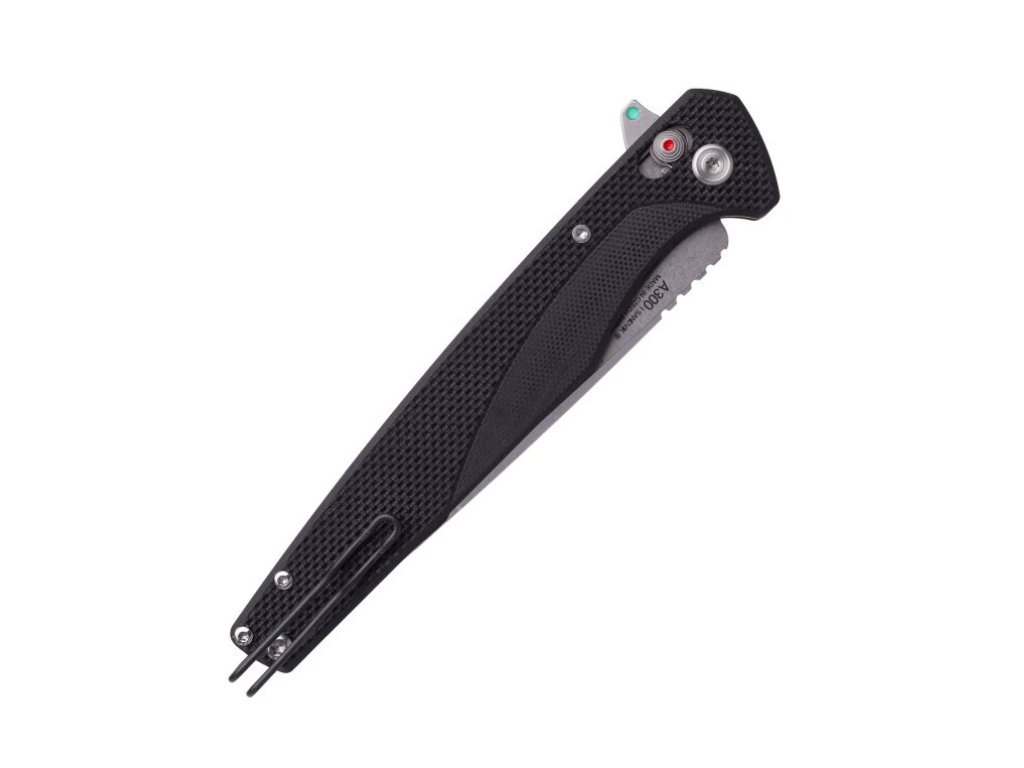 ANV A300 je robustní zavírací EDC nůž od české značky Acta Non Verba, určený pro náročnější každodenní použití. Nabízí pevnou konstrukci, kvalitní čepel z odolné oceli, ergonomickou rukojeť a bezpečnou pojistku. K dispozici jsou dvě varianty – s flipperem nebo oboustranným kolíkem. Obě verze se hladce otevírají díky ložiskům a pojistka, jak je u řady A zvykem, je spolehlivý A-lock. V zadní části rukojeti se nachází kontrastní červené spacery, které zpevňují konstrukci střenek a také doplňují charakteristický černo-červený design řady A.